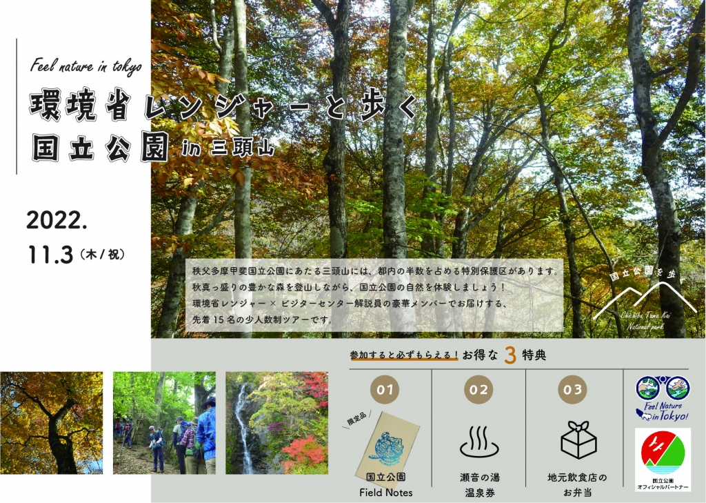1.イベント名「11月3日 環境省レンジャーと歩く、国立公園in三頭山」