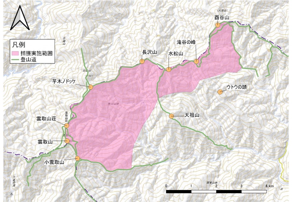 雲取山周辺で増えすぎたシカの数を管理するための指定管理鳥獣捕獲等事業による捕獲が実施されます。