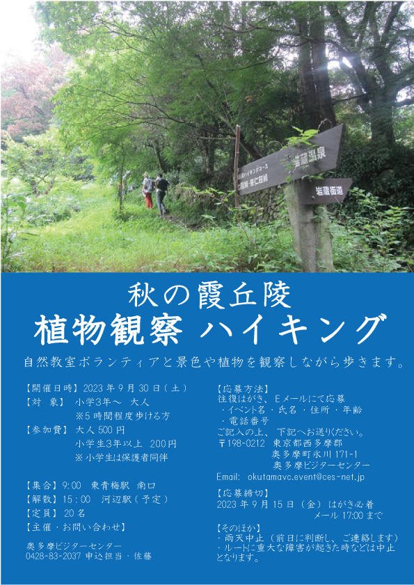 ①イベント名 自然教室 「秋の霞丘陵 植物観察ハイキング」