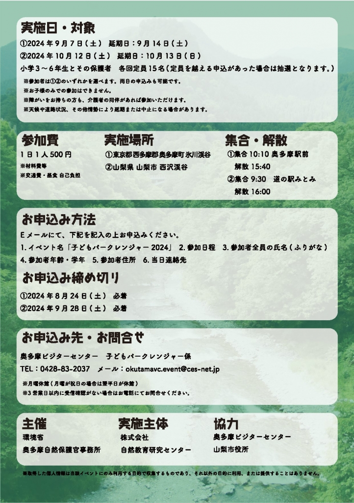 1.イベント名「子どもパークレンジャー2024」
