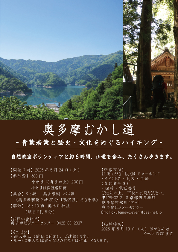 ①イベント名 自然教室 「奥多摩むかし道 ~青葉若葉と歴史・文化をめぐるハイキング~」