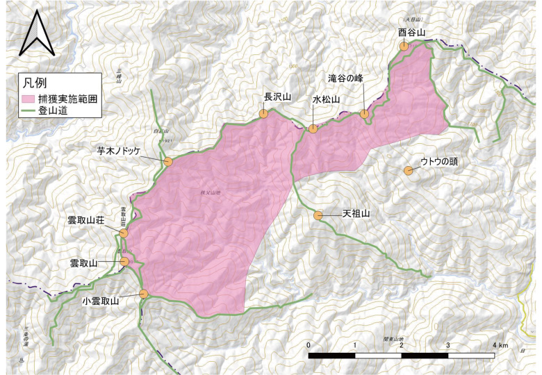 雲取山周辺で増えすぎたシカの数を管理するための指定管理鳥獣捕獲等事業による捕獲が実施されます。実施にあたっては、専門の業者が登山道外へ向けて発砲し、確実にシカを視認して安全に注意して捕獲を行います。ご理解・ご協力をお願いします。●実施期間(全体):令和7年8月18日から令和8年3月19日まで