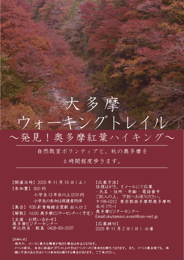 ①イベント名 自然教室 「大多摩ウォーキングトレイル ~発見!奥多摩紅葉ハイキング~」