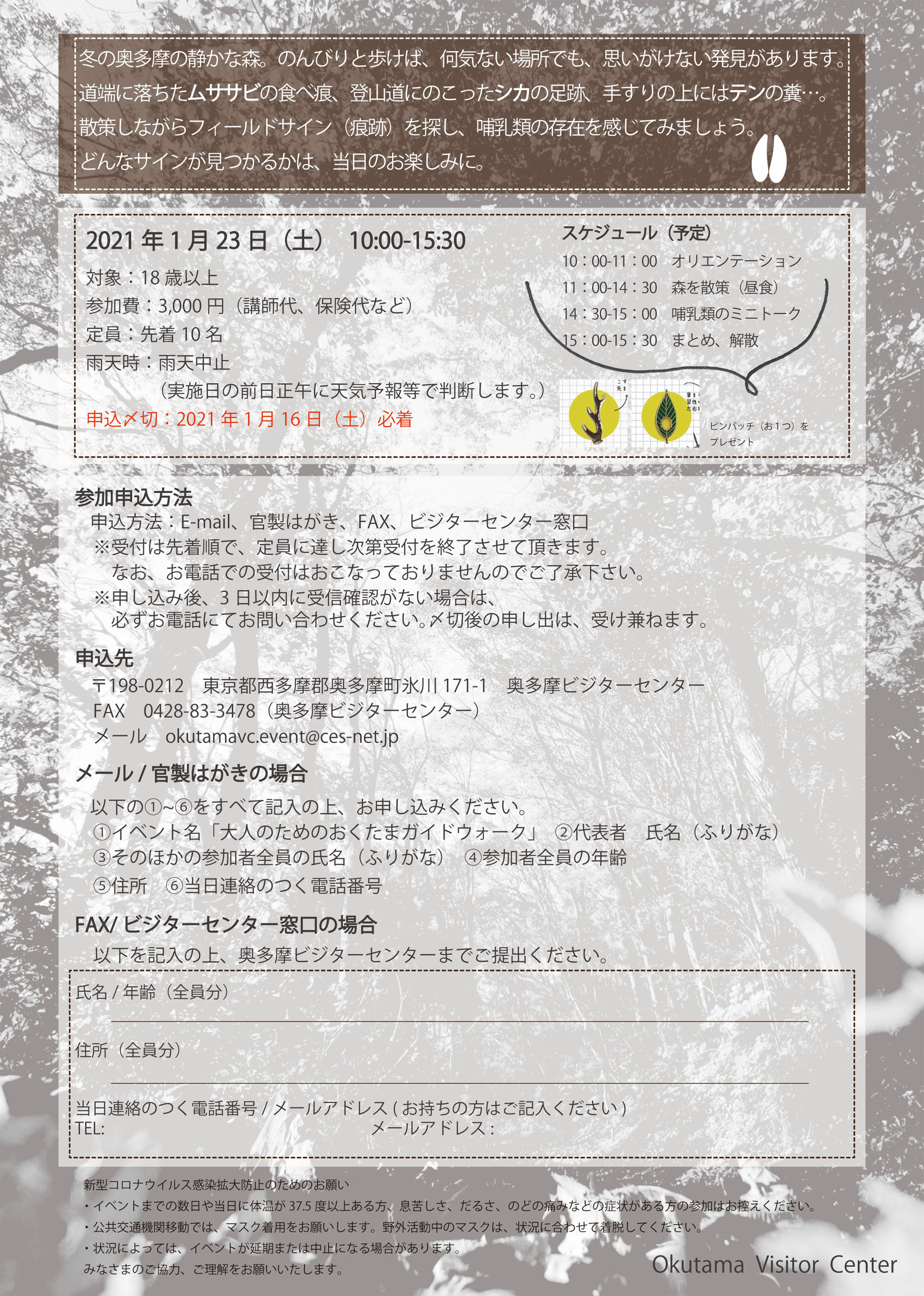 ●FAXの宛先: 0428-83-3478(奥多摩ビジターセンター)